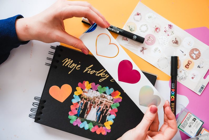 Vhod vám přijdou také scrapbookové samolepky ve tvaru srdíček nebo okvětních lístků.