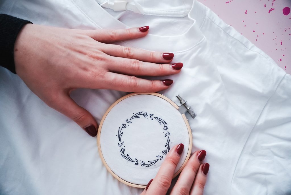 • Na zvolené místo na triku si připevníme vyšívací kruh.