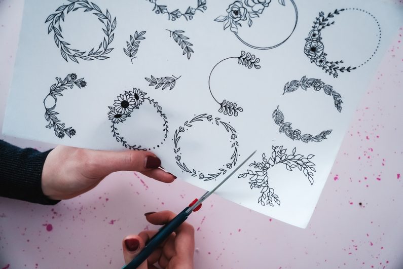 • Doprostřed nalepíme vyšívací šablonu.