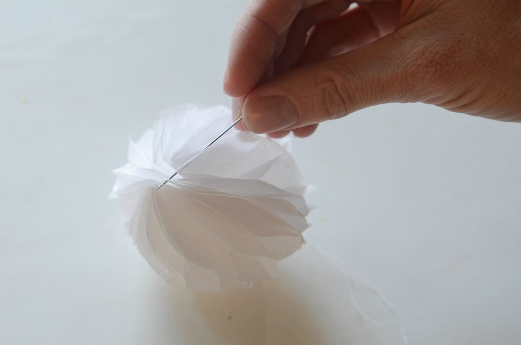 Špičkami papíru v horní části vajíčka protáhněte nit a vytvořte poutko na zavěšení.