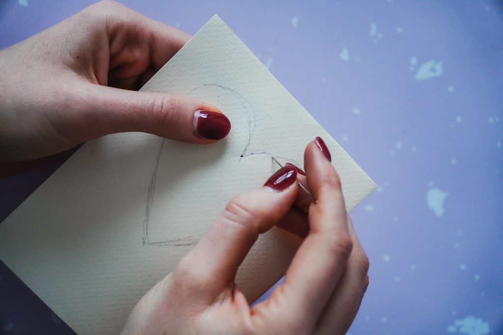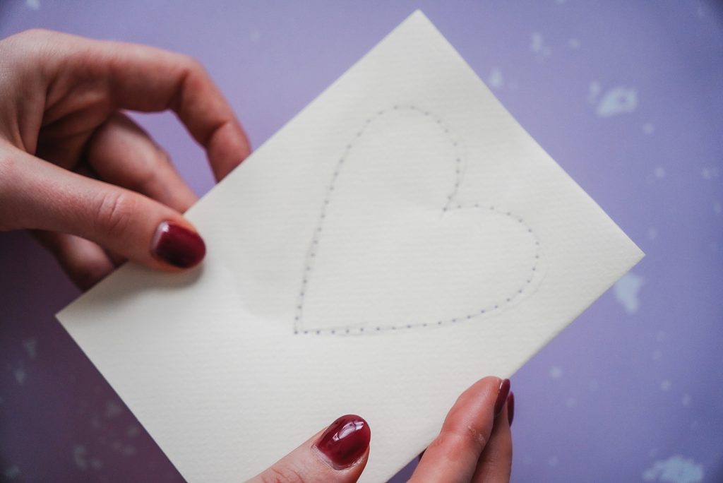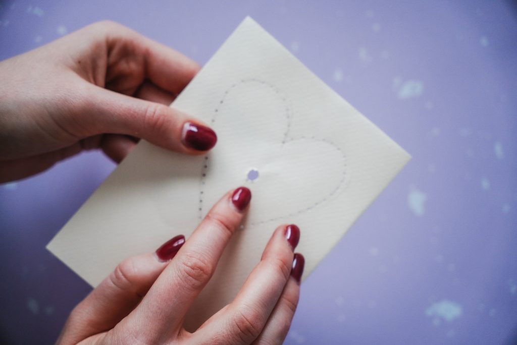 • Jehlou uděláme po obvodu srdíčka do papíru dírky, cca 1 mm od sebe