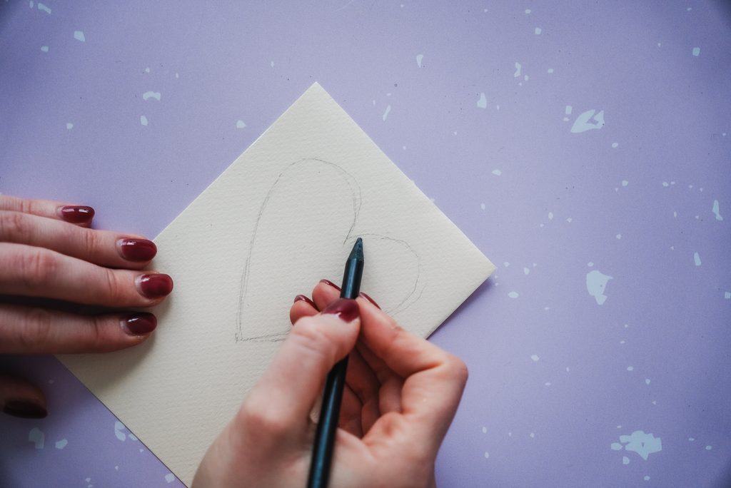 • Na přání si tužkou namalujeme srdíčko.