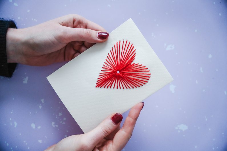 Valentýnské přání s vyšívaným srdíčkem
