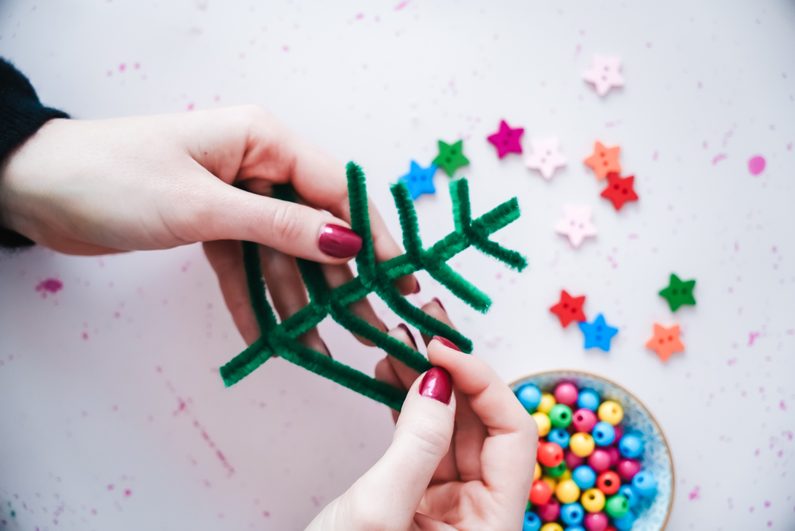 • Následně je obtočíme kolem nejdelšího drátku (kmene) tak, aby vznikl stromeček.
