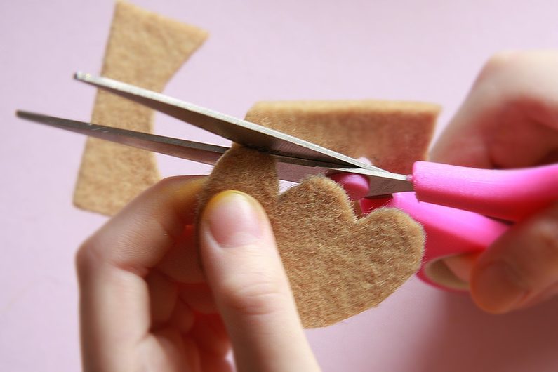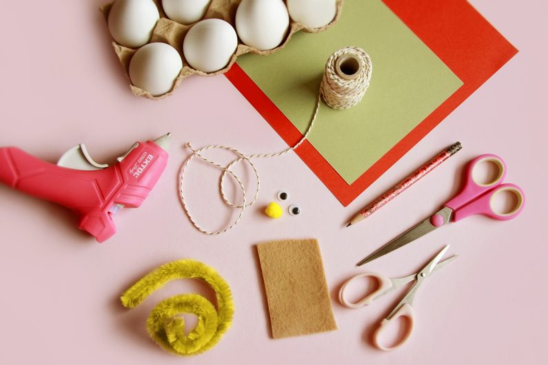Teď už nám zbývá vystřihnout dle šablony z filcu nožičky kuřátka. Máme vystřiženo, přilepíme na spodní část vajíčka.