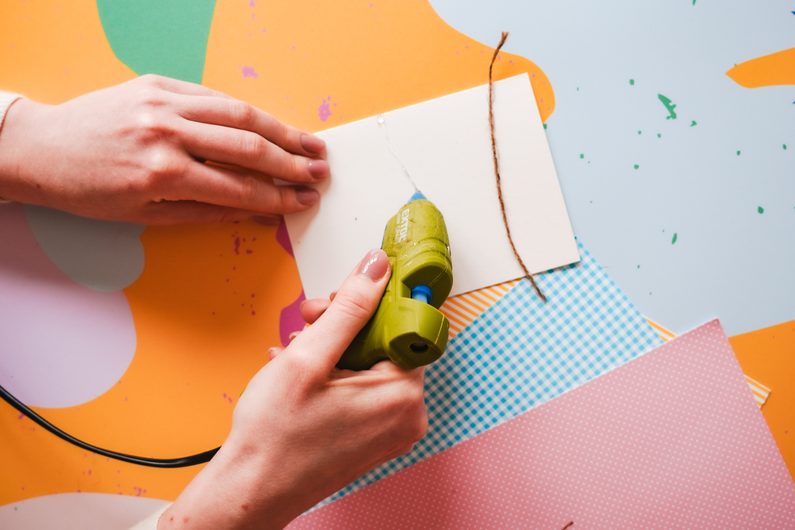 Na přání nalepíme pomocí tavné pistole dva provázky jako šňůru.