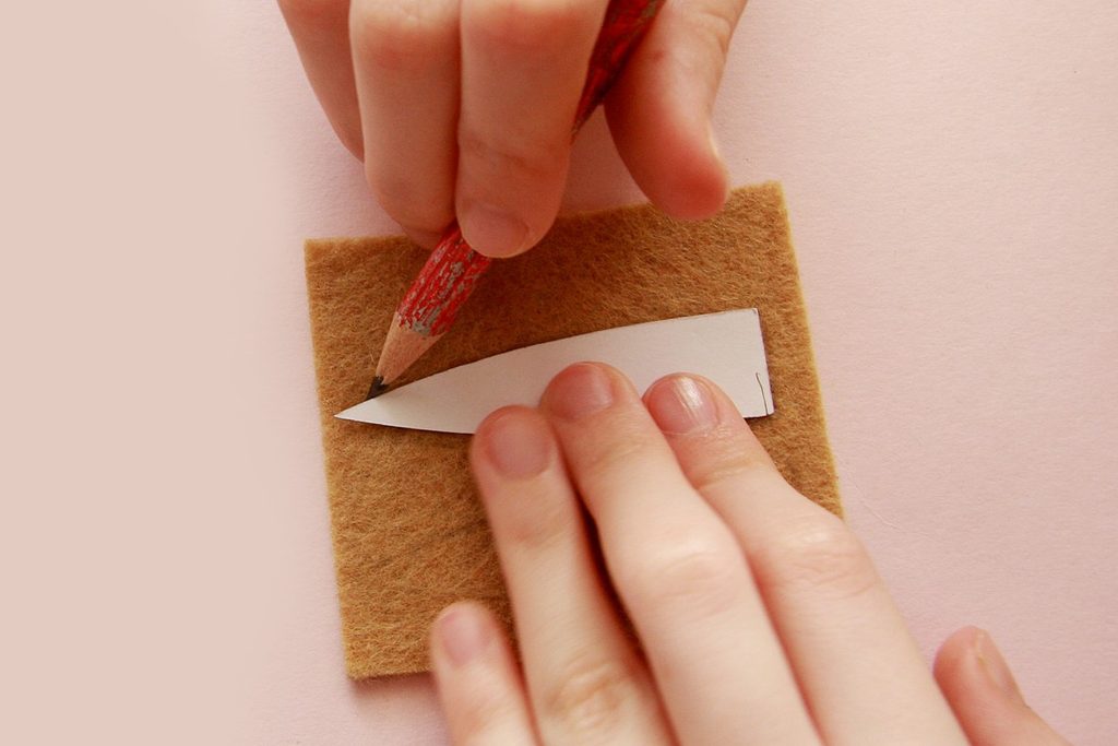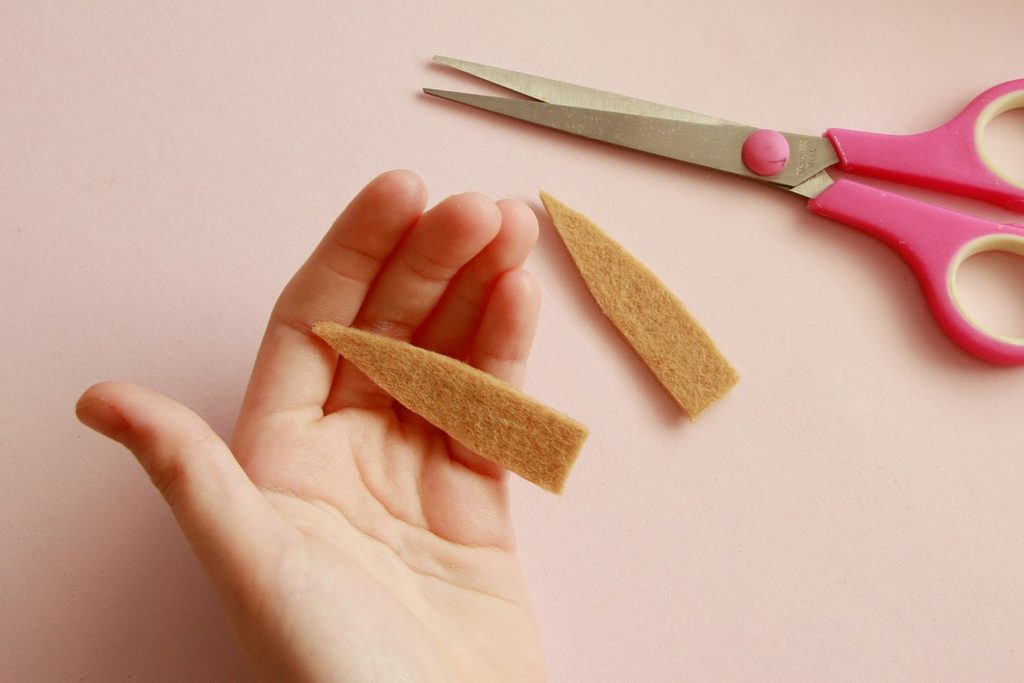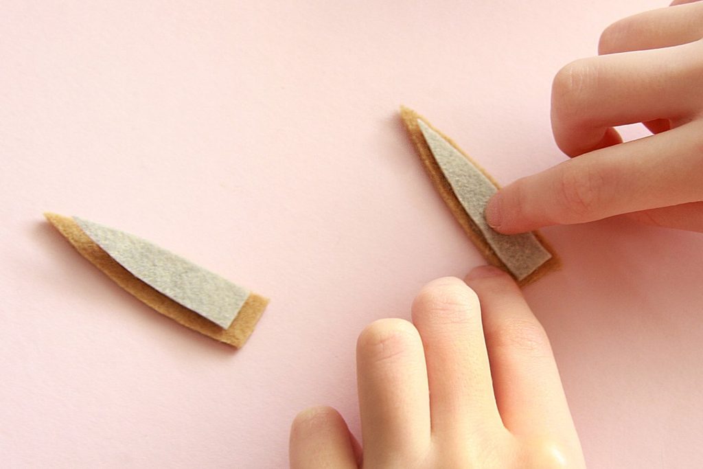 Stejný postup je i u vnitřní části uší, použijeme šedý filc.