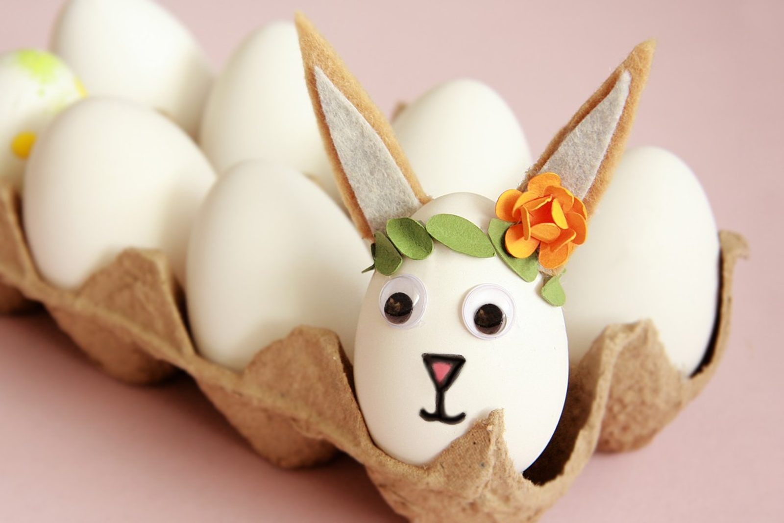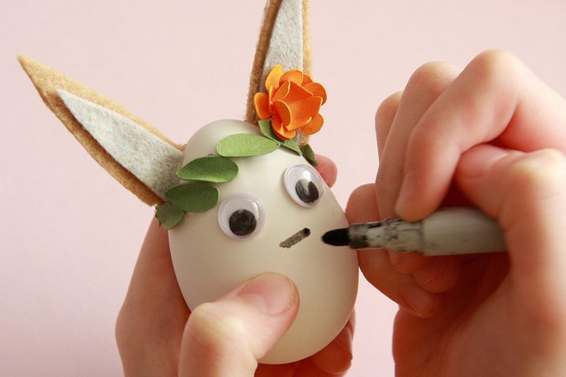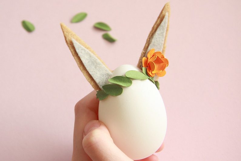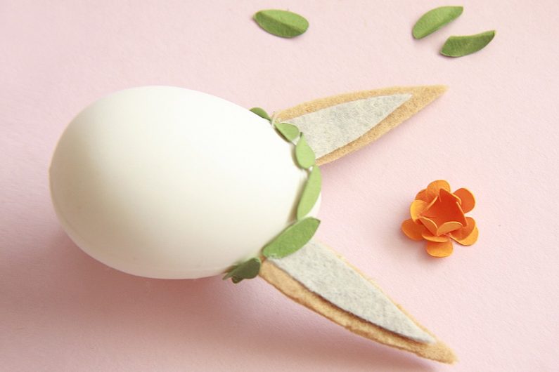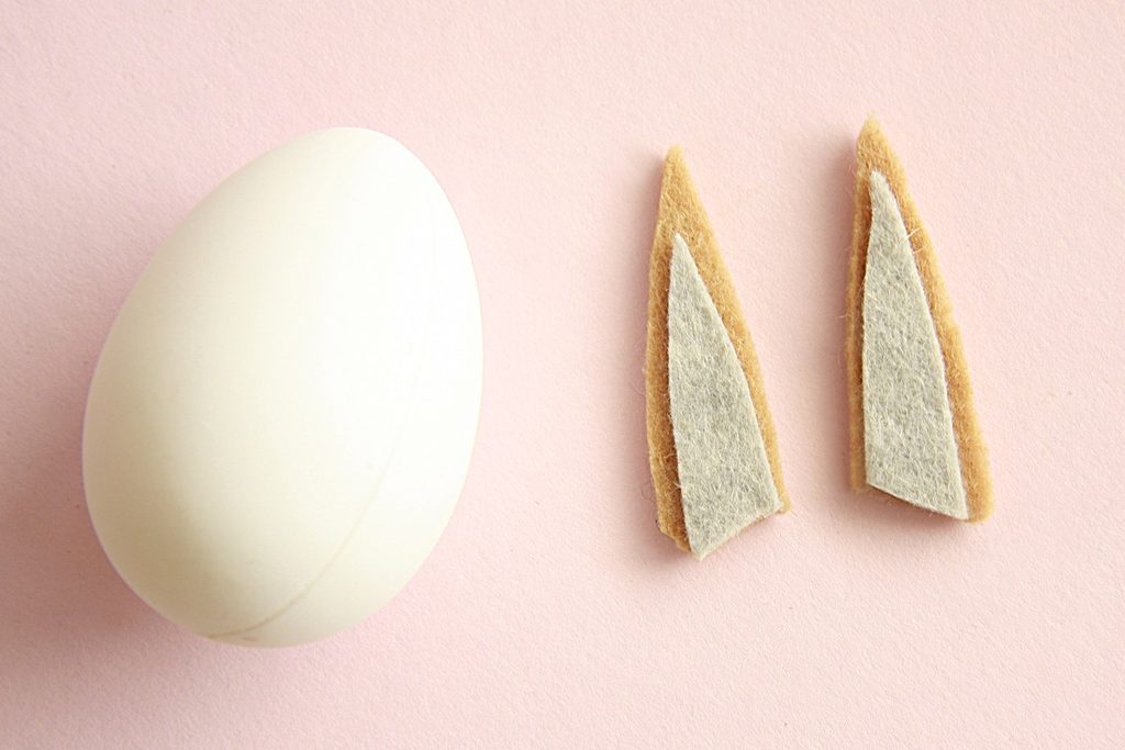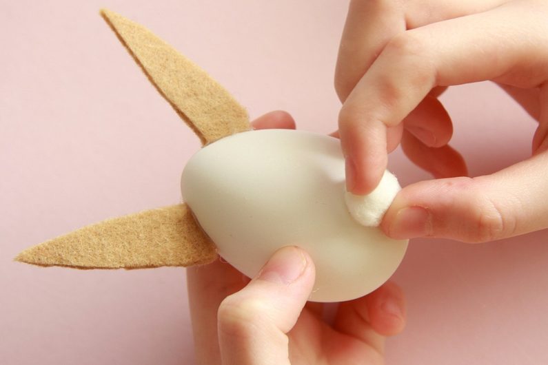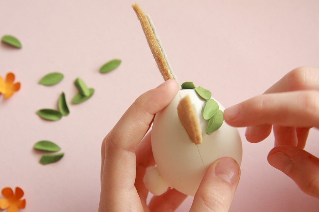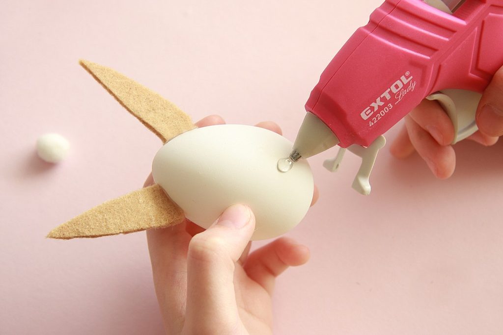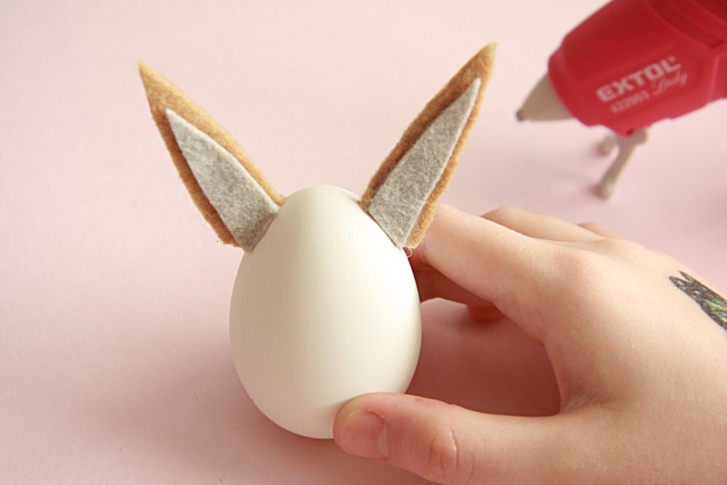 Uši po zaschnutí zlehka zastřihneme tak, aby hezky přilehly k vejci a přilepíme je k němu.