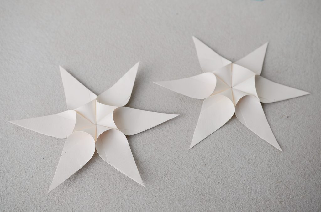 Slepte k sobě vždy šest špiček, aby vám vznikly dvě samostatné hvězdice, které následně zadními stranami přilepte k sobě. Špičky by se přitom neměly překrývat, ale vyplňovat mezery.