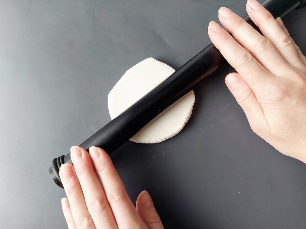 Připravíme si samotvrdnoucí hmotu, kterou si na modelovací podložce rozválíme na tloušťku cca 3 mm.