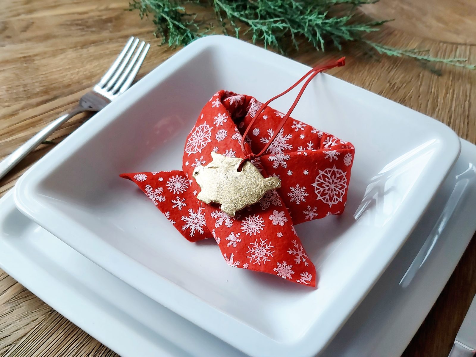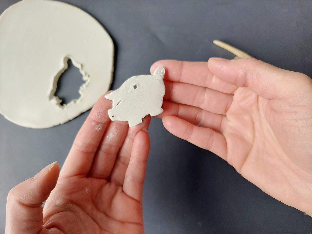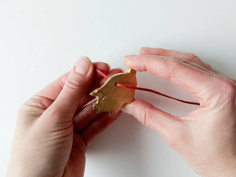 Na protažení stuhy či řemínku si pomocí párátka uděláme otvor. Naznačíme oko a rypáček. Hotové prasátko necháme minimálně 24 hodin schnout.