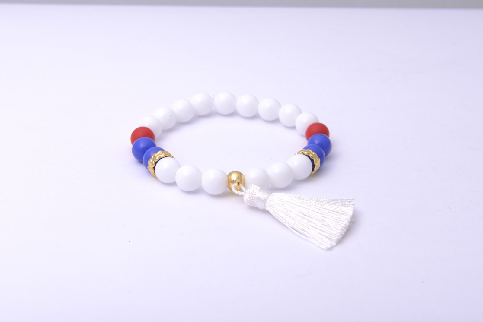 Zlato bílý náramek se střapcem