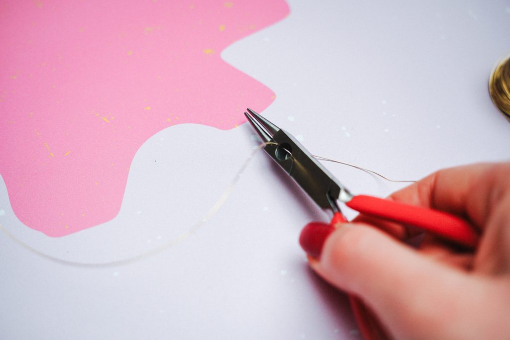 • Pomocí kleští si uštípneme cca 15 cm mosazného drátu a kulatými kleštěmi uděláme na jednom konci očko.