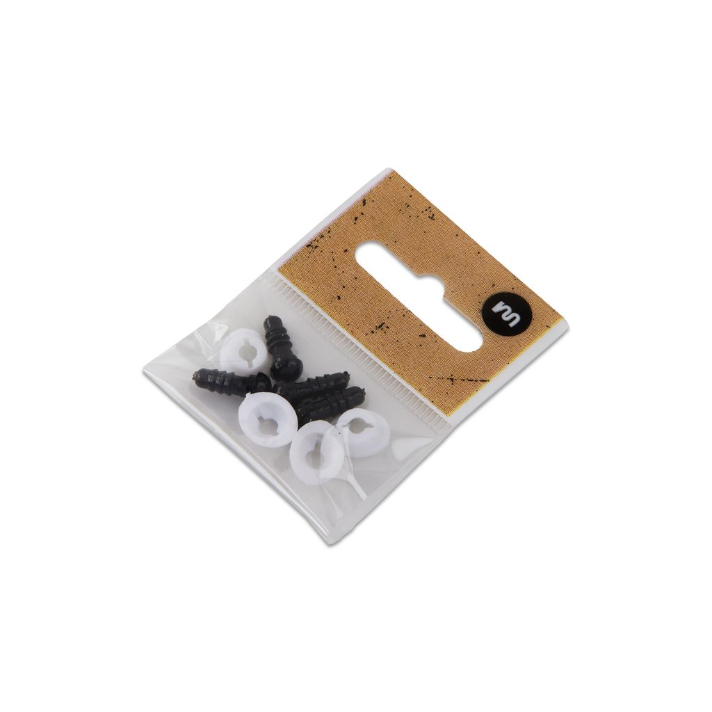 Černá očička na výrobu hraček ⌀6 mm s bezpečnostním uzávěrem jsou vhodná pro použití při tvorbě plyšových nebo háčkovaných hraček či amigurumi postaviček. Jednoduchý zacvakávací mechanismus bezpečnostního uzávěru zabraňuje vypadnutí očiček z hračky. Očičko má průměr 6 mm, délka úchytu je 14 mm.