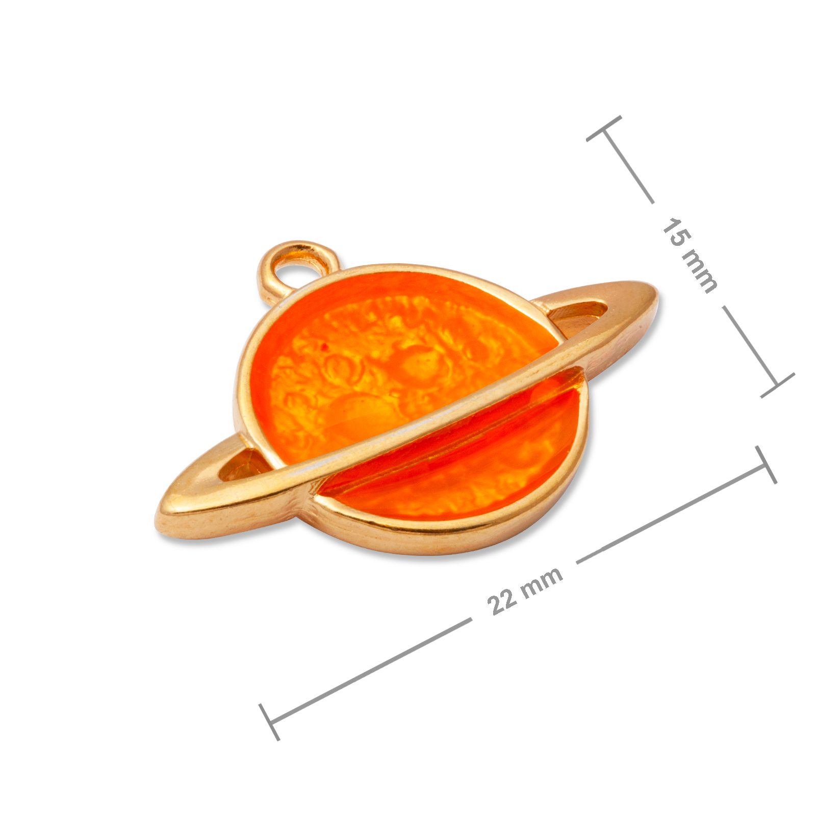 Manumi prívesok oranžová planéta 22x15mm pozlátený je komponent so špeciálnou smaltovou úpravou, ktorý bude ideálny do vašich vrstvených náramkov alebo náhrdelníkov s motívom vesmíru. Vďaka povrchovej úprave vzácnymi kovmi môžete komponent skombinovať napríklad so striebornými alebo pozlátenými retiazkami. Vyniknú tiež na iných navliekacích materiáloch, ako sú kožené remienky alebo Shamballa šnúra.