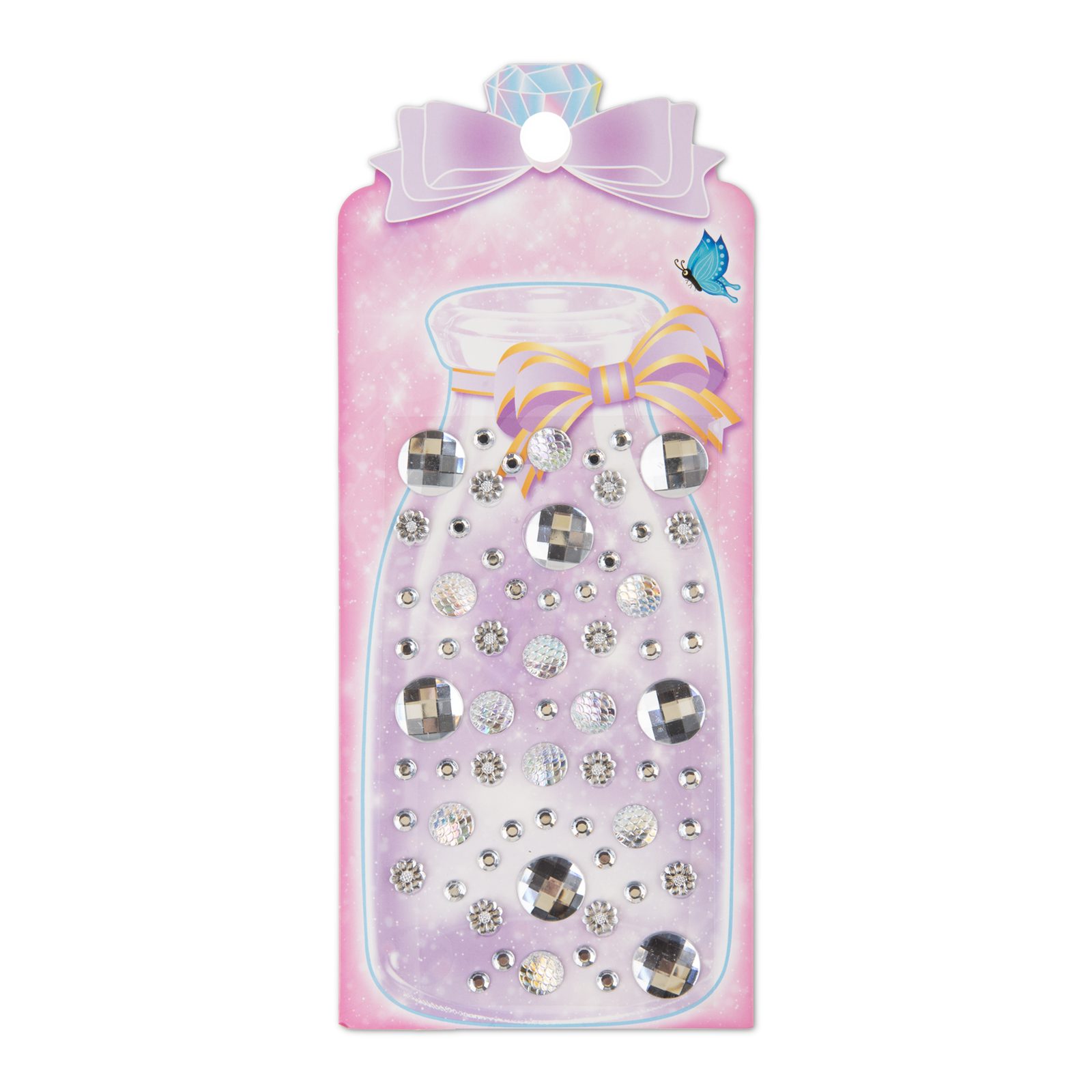 darčekových balení, obalov na zošity, hrebeňov, krytov na telefón a podobných predmetov. Aplikácia je veľmi jednoduchá, na archu nájdete 65 kusov samolepiacich kamienkov s priemerom cca 5 až 18 mm vrátane tých s motívom kvetín alebo holografických kamienkov s motívom šupín morskej panny.