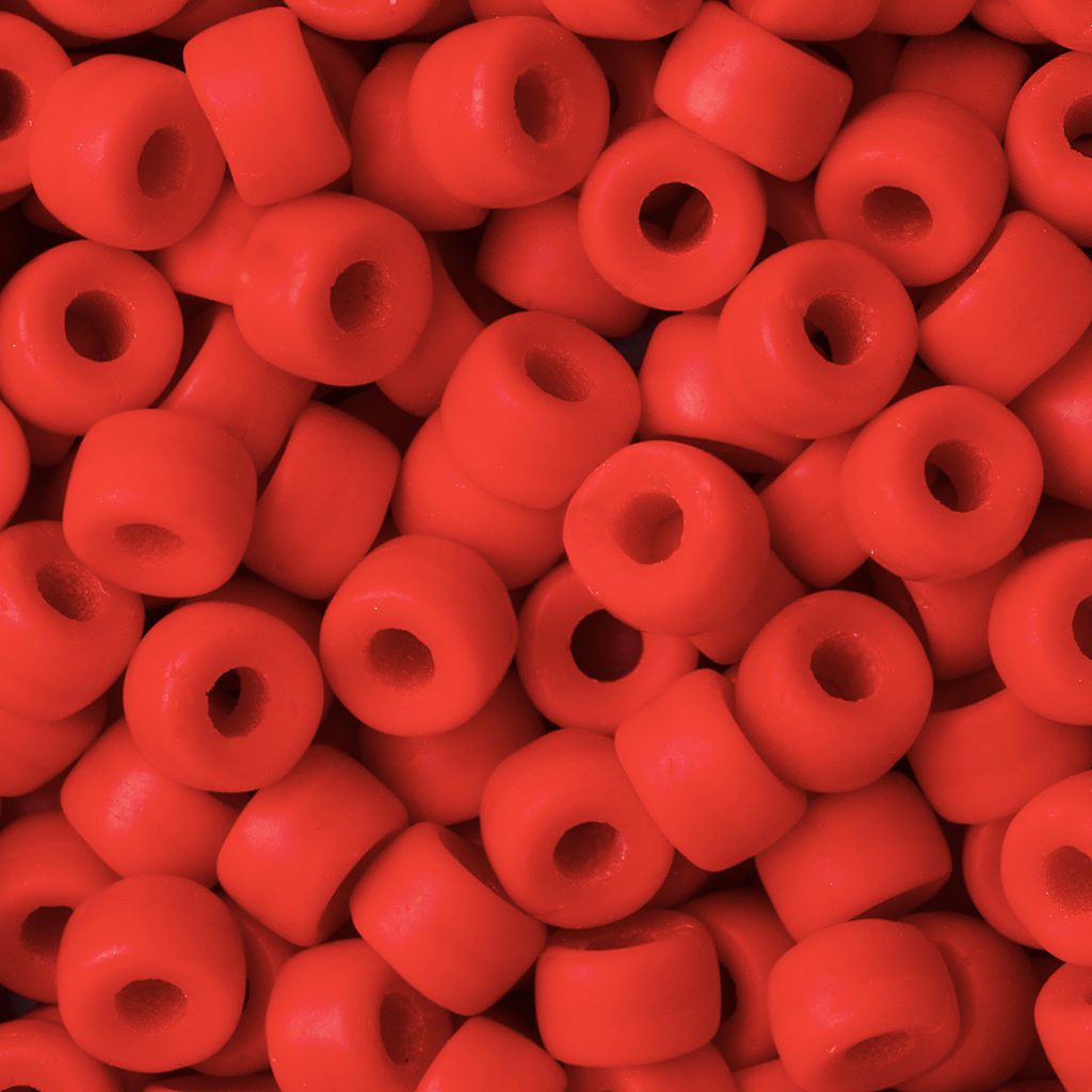 Sklenené koráliky s veľkou dierkou 6mm Coral Red Opaque Matt sú väčšie koráliky guľatého tvaru s veľkou dierkou, ktoré sa hodia na korálikovanie, do príveskov alebo do vlasov. Ich tvaru sa hovorí “bavorák”.