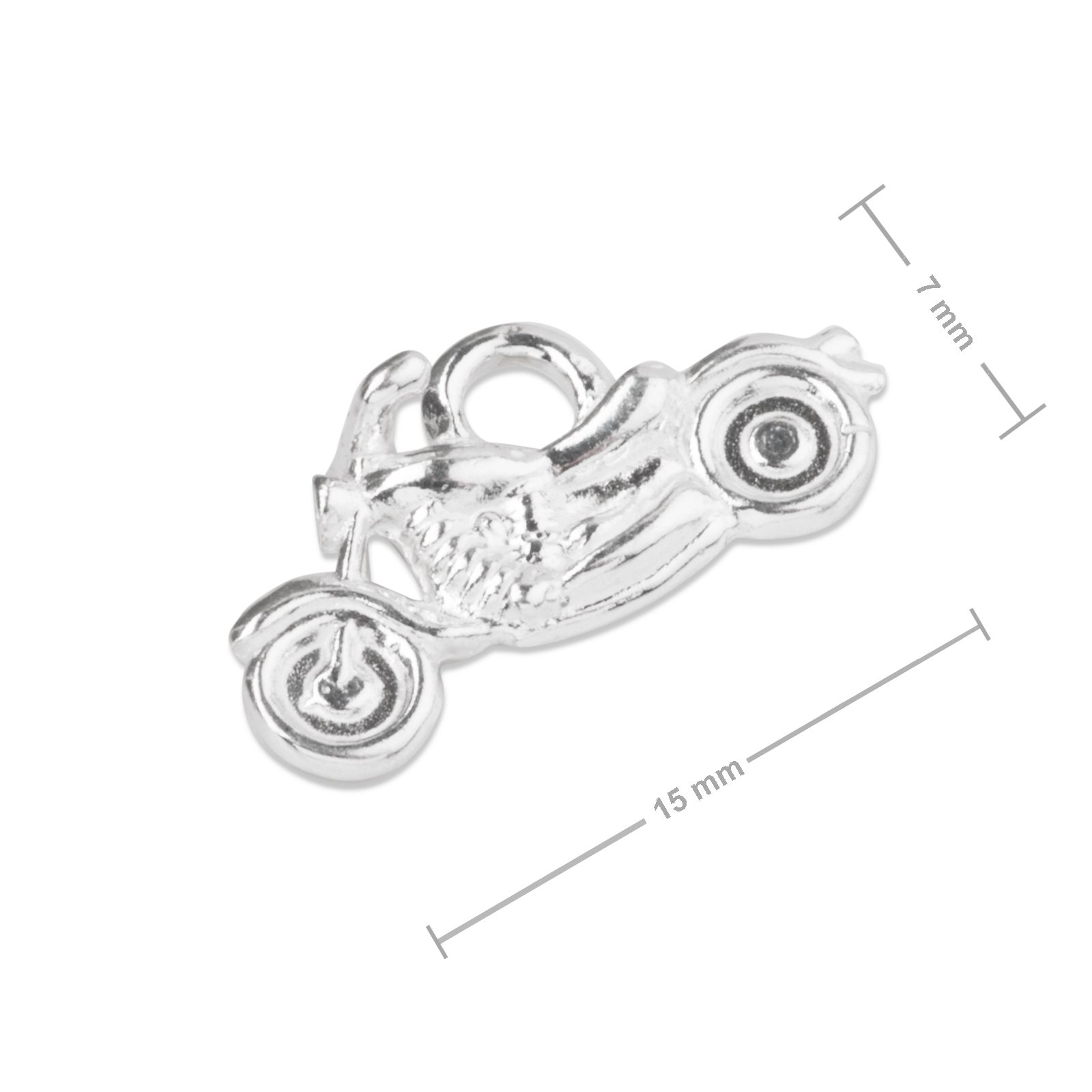 Strieborný prívesok motorka č.1020 odporúčame zavesiť na retiazku či náramok s jemným vzorom. Hodí sa tiež na trendy šperky zo Shamballa šnúr. Prívesok je vyrobený z kvalitného striebra, ktoré vám zaručí jeho dlhú životnosť a stálofarebnosť.