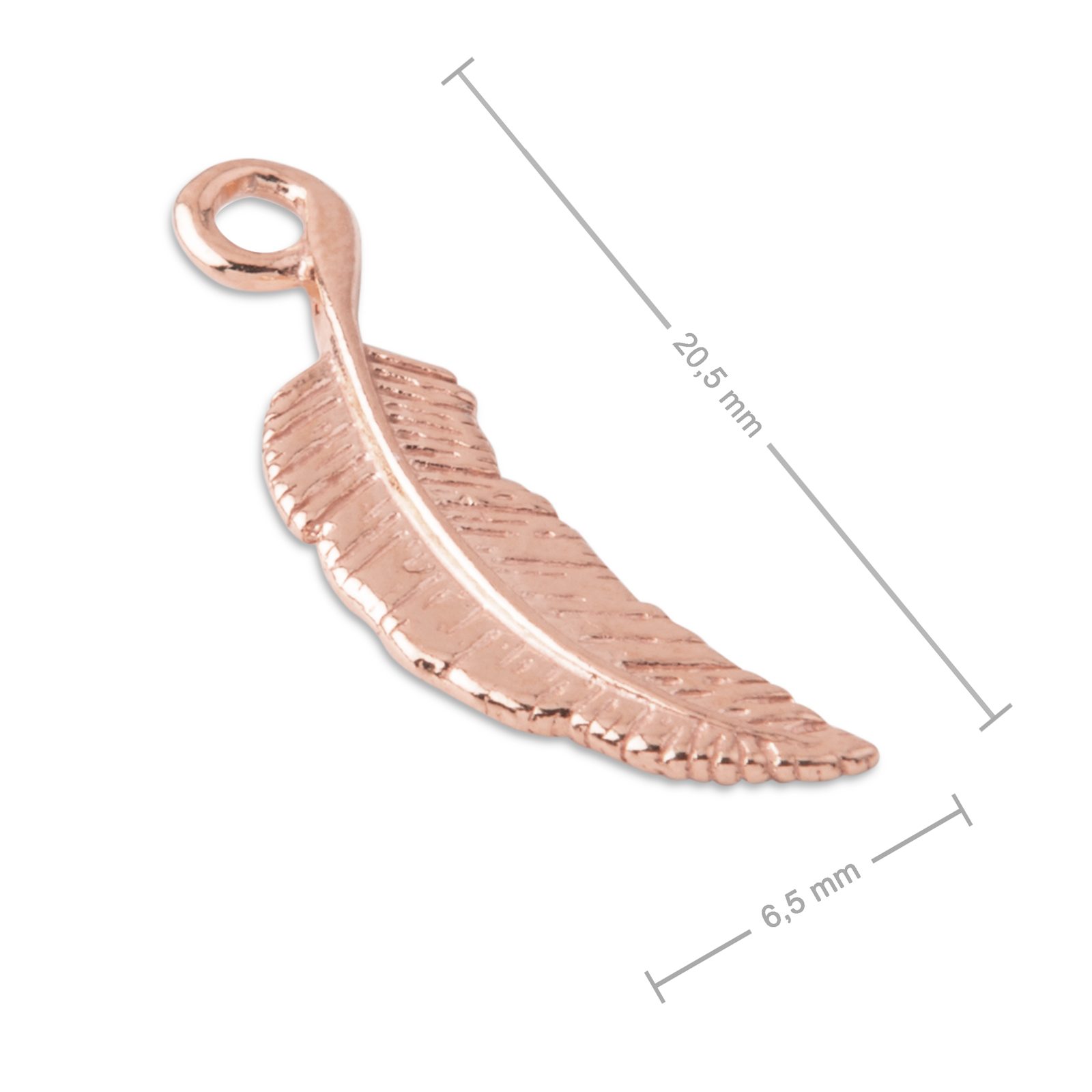 Strieborný prívesok pierko pozlátený ružovým zlatom č.857 odporúčame zavesiť na retiazku či náramok s jemným vzorom. Hodí sa tiež na trendy šperky zo Shamballa šnúr. Prívesok je vyrobený z kvalitného striebra, ktoré vám zaručí jeho dlhú životnosť a stálofarebnosť.