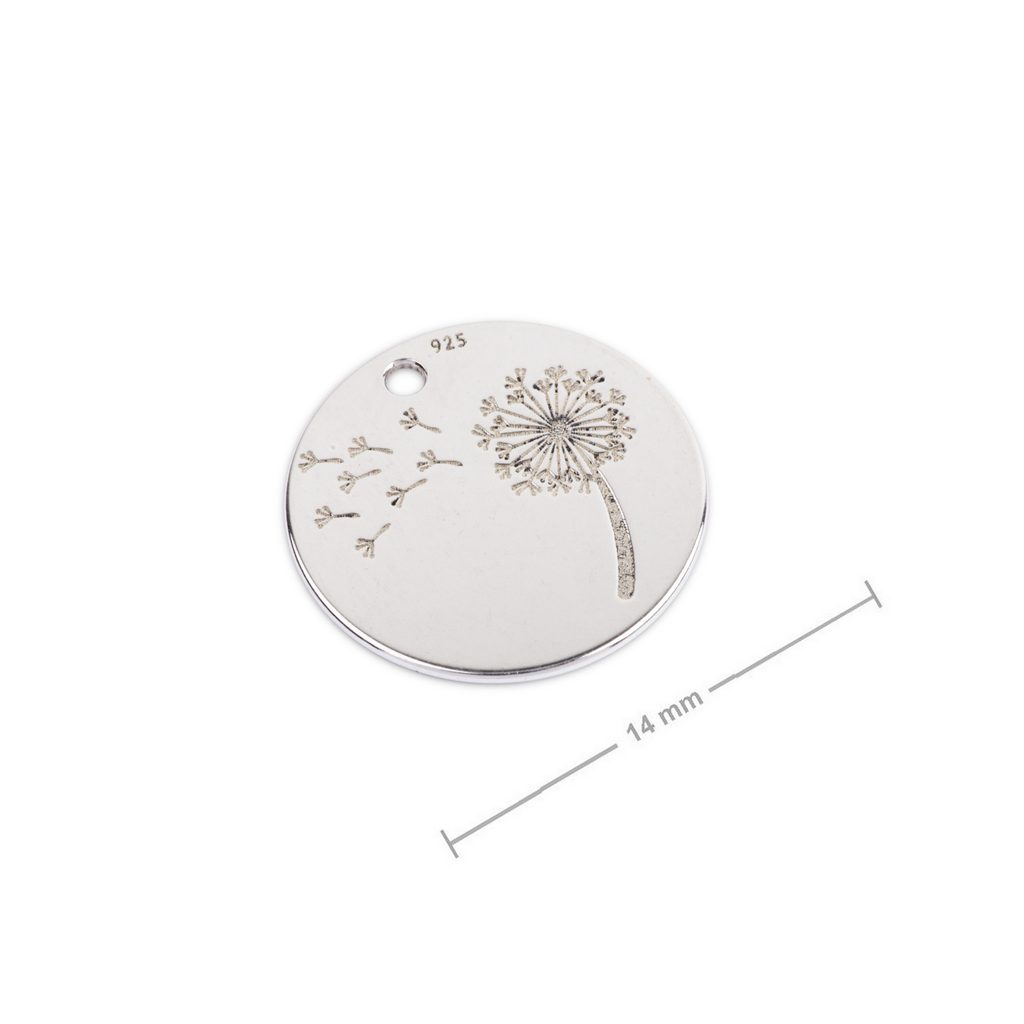 Stříbrný přívěsek koncovka ve tvaru pampelišky, o průměru 14 mm, doporučujeme zavěsit na řetízek či náramek s jemným vzorem. Hodí se také na trendy šperky ze Shamballa šňůr. Přívěsek je vyrobený z kvalitního stříbra Ag925/1000, které vám zaručuje jeho dlouhou životnost a stálobarevnost.