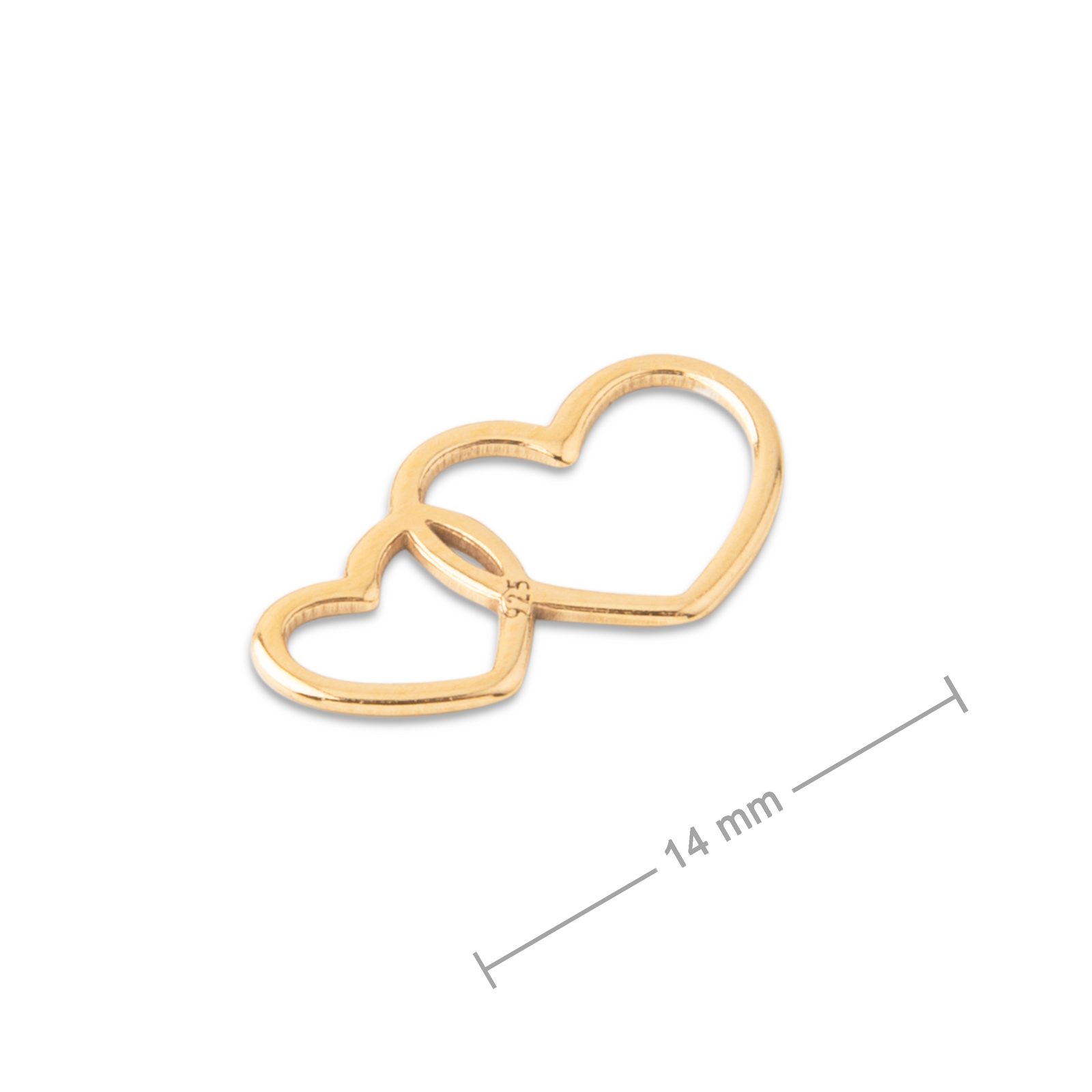 Strieborný spájací diel dvojité srdce pozlátený 14mm č.763 je ideálny ozdobný spájací diel do trendy náramkov zo Shamballa šnúry. Tento diel väčšinou tvorí ústredný motív jednoduchých šperkov. Tento komponent je pozlátený 24k zlatom, takže vám zaručí to, že sa vaša bižutéria neošúpe a zachová si stálofarebnosť.