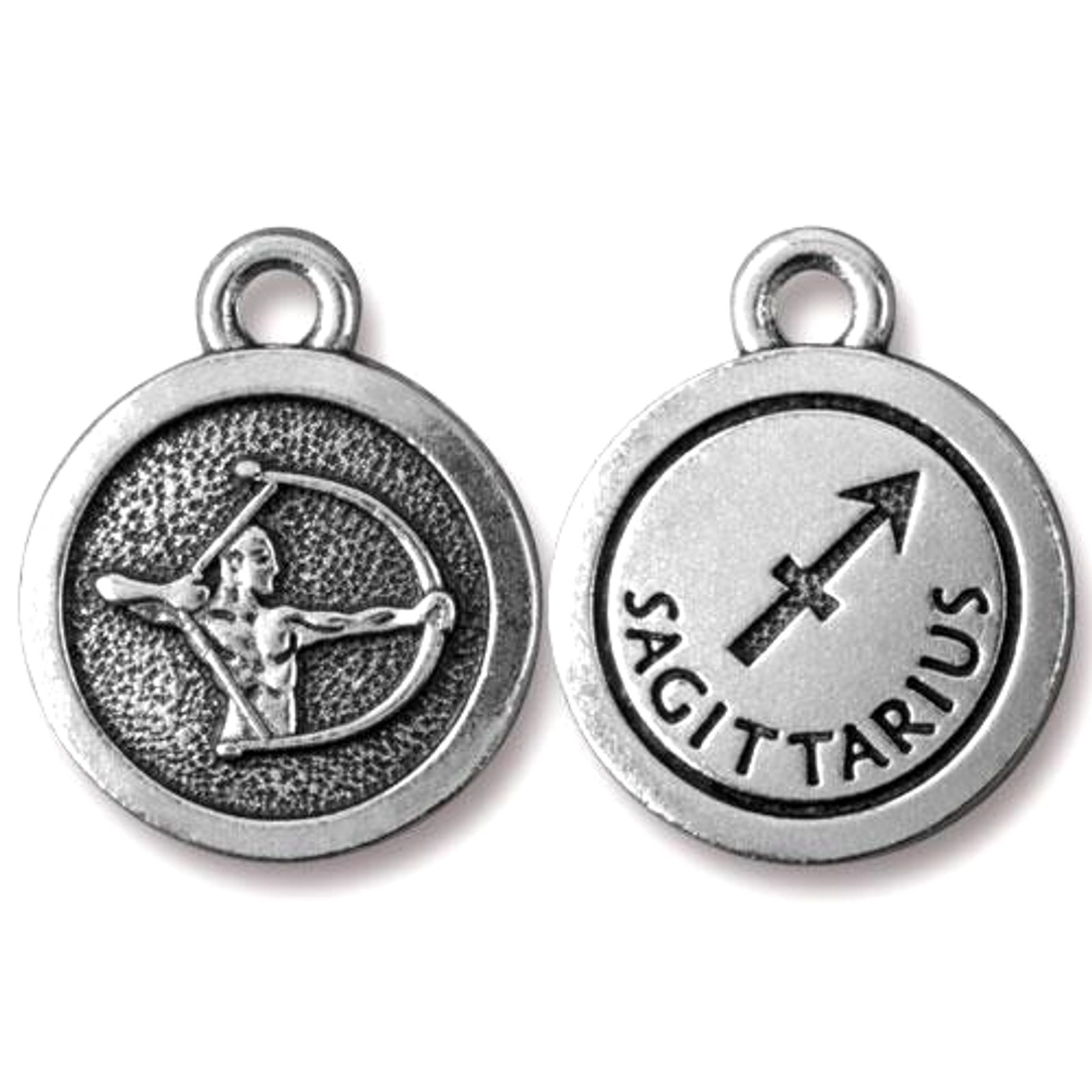 TierraCast prívesok Sagittarius Strelec starostrieborný má originálny ručne prepracovaný vzhľad so znamením zverokruhu a je vhodný na zavesenie pomocou spájacieho krúžku na retiazku alebo náramok. Cínový prívesok z kolekcie horoskopu je stálofarebný, veľmi tvrdý a neobsahuje nikel, olovo ani kadmium.