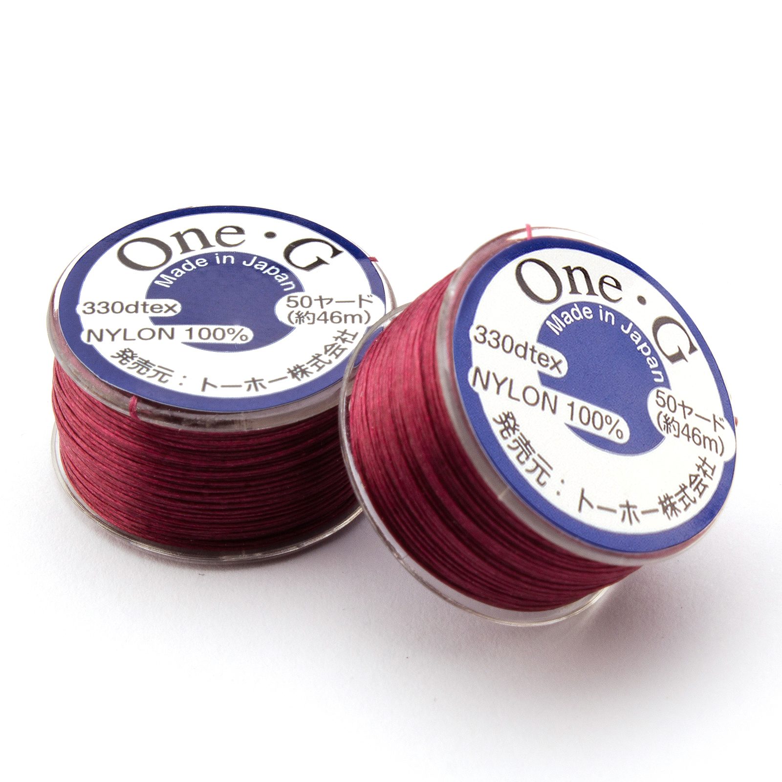 Toho One-G nylónová niť bordó č.5 je veľmi tenká a extrémne pevná niť na šité šperky od výrobcu korálikov TOHO. Niť sa takmer nestrapká a svojou hrúbkou zodpovedá niti NYMO hrúbky B.