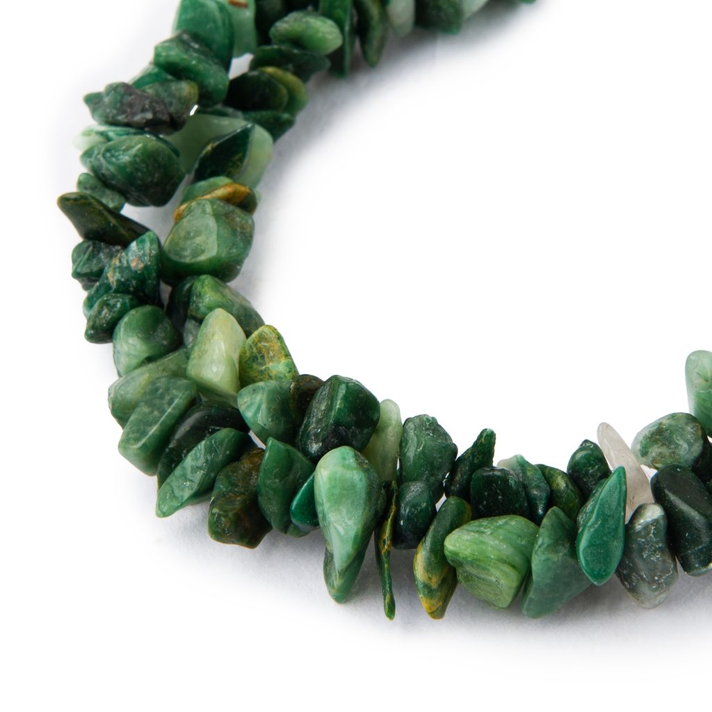 Zlomky z minerálu Jadeit zelený jsou navlečené na šňůře o délce 80 cm a můžete je využít k výrobě šperků nebo dekorací. Zlomky jsou oblíbené pro své nepravidelné tvary, které se krásně doplňují v kombinaci s individuální přírodní kresbou jednotlivých korálků. Minerály údajně vyzařují energie, které pozitivně působí na organismus. Pokud se chcete dozvědět více o jednotlivých minerálech, přečtěte si náš článek Vše, co jste kdy chtěli vědět o minerálech. Sepsali jsme pro vás také článek o špercích z minerálů podle znamení zvěrokruhu nebo jak si pomocí minerálů vyčistit čakry.