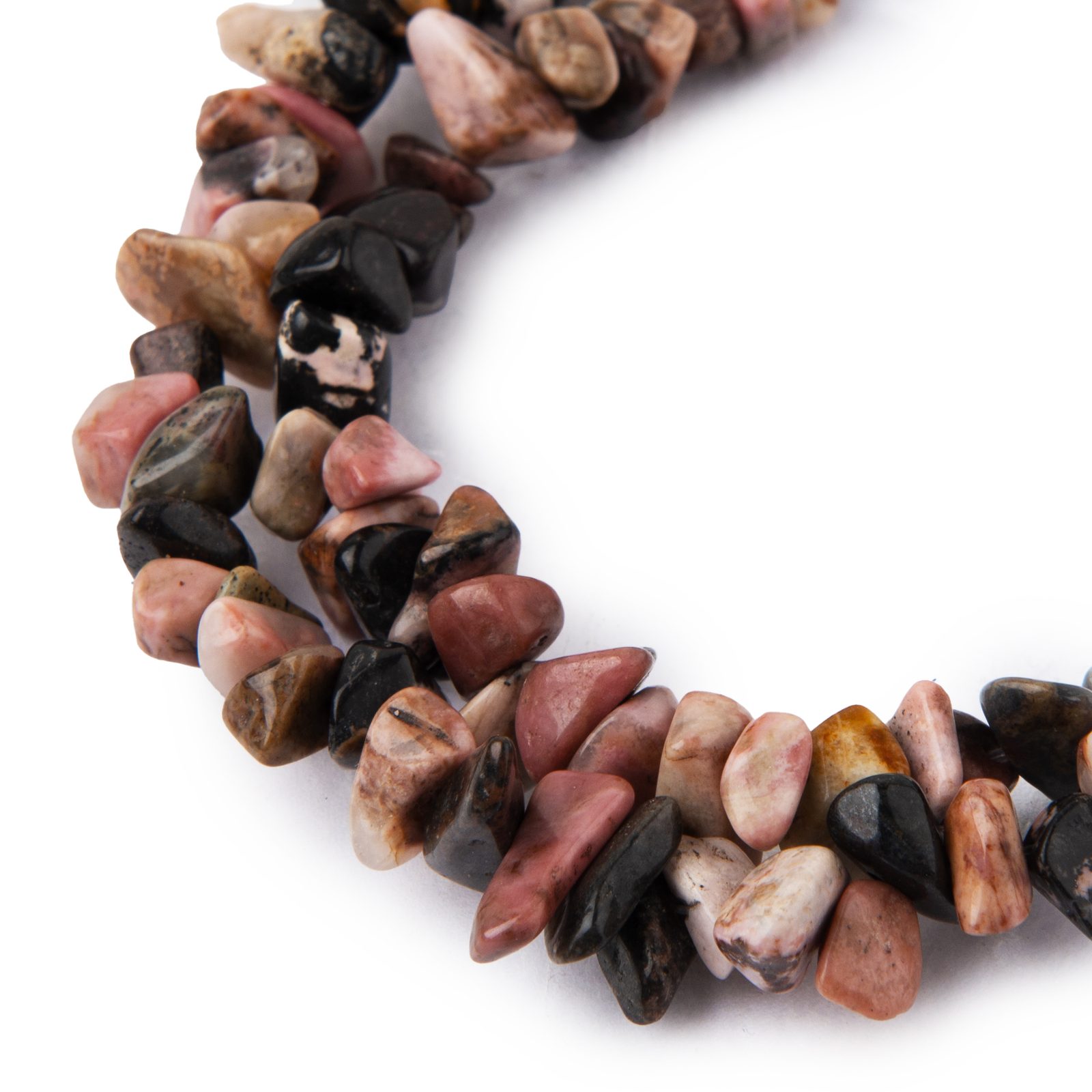 Zlomky z minerálu Rodonit tmavý jsou navlečené na šňůře o délce 80 cm a můžete je využít k výrobě šperků nebo dekorací. Zlomky jsou oblíbené pro své nepravidelné tvary, které se krásně doplňují v kombinaci s individuální přírodní kresbou jednotlivých korálků. Minerály údajně vyzařují energie, které pozitivně působí na organismus. Pokud se chcete dozvědět více o jednotlivých minerálech, přečtěte si náš článek Vše, co jste kdy chtěli vědět o minerálech. Sepsali jsme pro vás také článek o špercích z minerálů podle znamení zvěrokruhu nebo jak si pomocí minerálů vyčistit čakry.