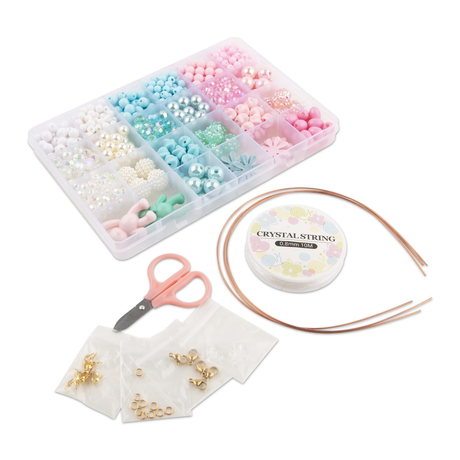 Skvelá kreatívna sada na výrobu náramkov, čeleniek alebo náhrdelníkov. Súprava obsahuje 20 rôznych druhov korálok s priemerom približne 5 - 12 mm a ďalšie 2 druhy príveskov v tvare kvetu a medvedíka. Elastickú šnúrku, 3 kovové základne na čelenku, kovové komponenty na pripevnenie a mini nožnice s okrúhlym koncom pre deti.